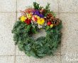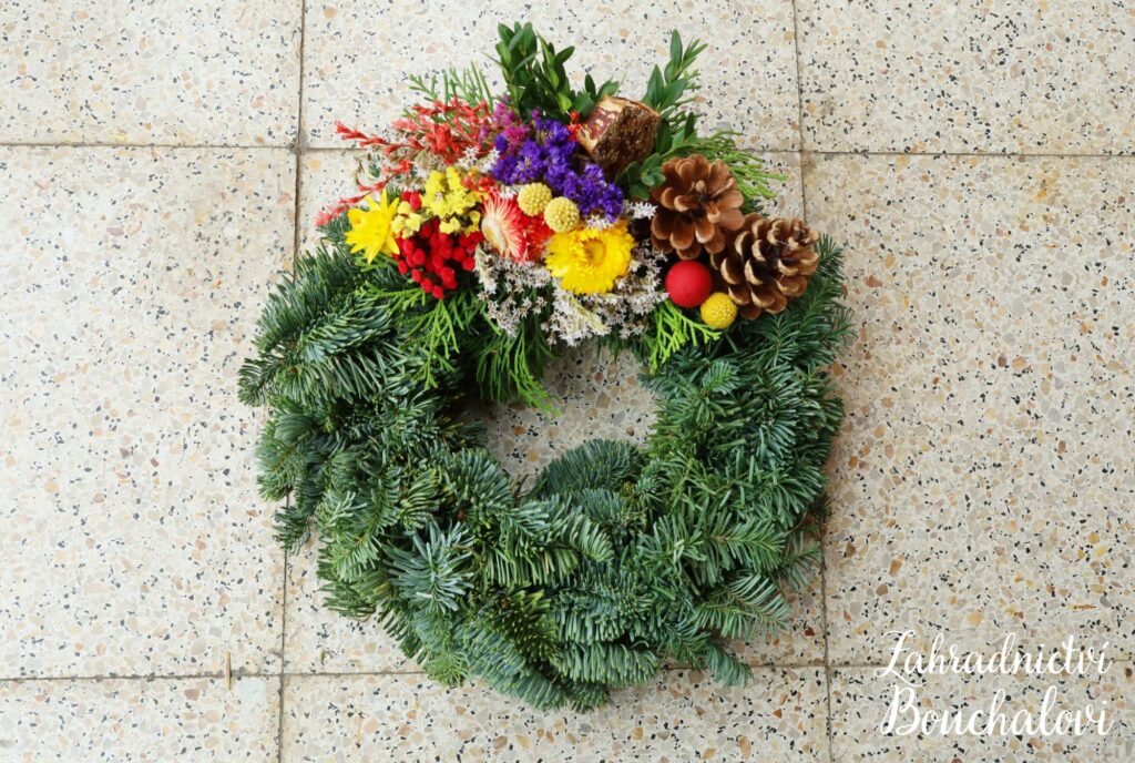 Malý věneček “20” je tvořen z přírodních materiálů. Obsahuje větvičky jedle nobilis a thuje, šišky a naše vlastnoručně vypěstované slaměnky a statici.